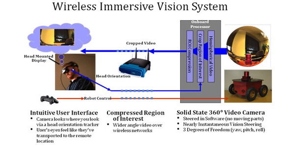 Immersive vision systems for teleoperation are a valuable tool for many applications including inspections of old buildings, pipelines and sewages, search and rescue, and military, i.e., detection and neutralization of roadside bombs. Immersive systems work by presenting a virtual representation of ...